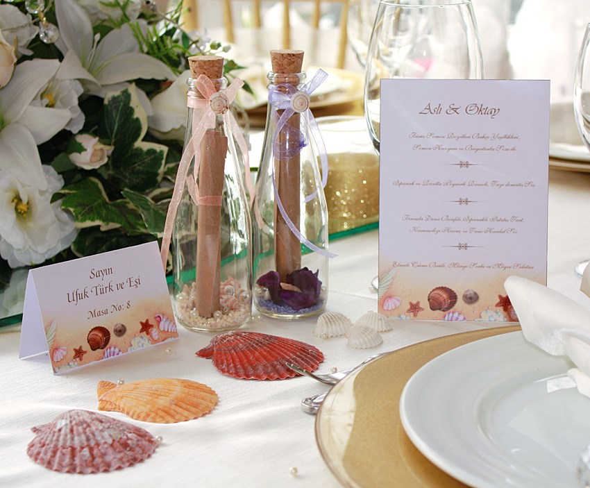 Davetiyenizin basılmış olduğu karton şişenin mantarını açtığınızda şişenin içinden çıkacak şekilde,