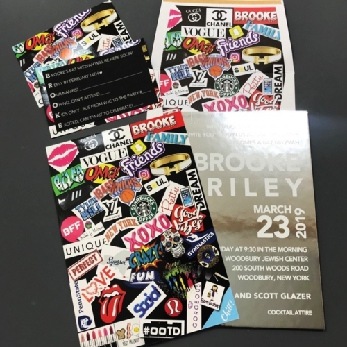 Davetiye ekstra kalın, Ön yüz gümüş metalize kağıt üzerine 1 renk beyaz seriğraf baskılı, Arka yüz 4 renk baskılı, Zarf 300 gr. beyaz fantazi kağıt, Zarf içi 4 renk liner baskılı. Ebat: 15,5*22 cm