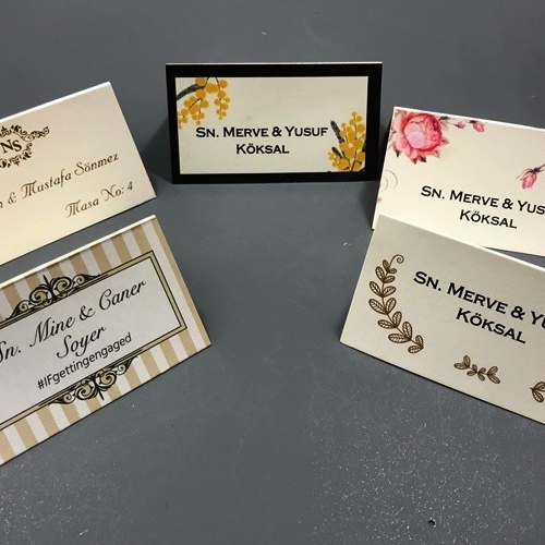Lazer kesim menü, Min. 50 Adet Lazer kesim numaratör, Min. 25 Adet Lazer kesim masa isim kartı, Min. 50 Adet Teşekkür kartı (zarf hariç), Min. 50 Adet LCV kartı (zarf hariç), Min. 50 Adet